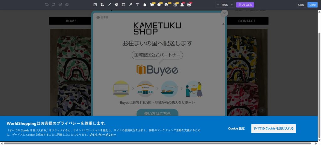 WorldShoppingは、株式会社ジグザグ(zig-zag, Inc.)が提供する越境EC支援SaaSで、日本のECサイト側にタグを1行入れるだけで、そのECサイトを海外販売対応にできるというサービスです。私が記憶してる限りではZenMarketもそうですが、特にBUYEEがもともと「購入代行」として台湾でtoCで展開してきているのに対し、WorldShoppingはみたところ日本側の越境EC支援が主軸になるようです。