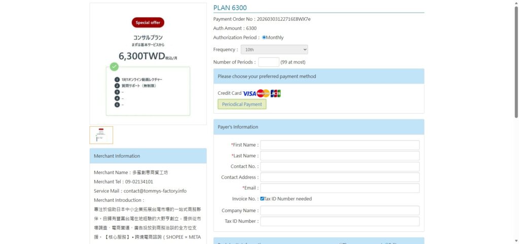 台湾の決済サービスNewebpay(藍新金流)を使用しており、クレジット決済となります。